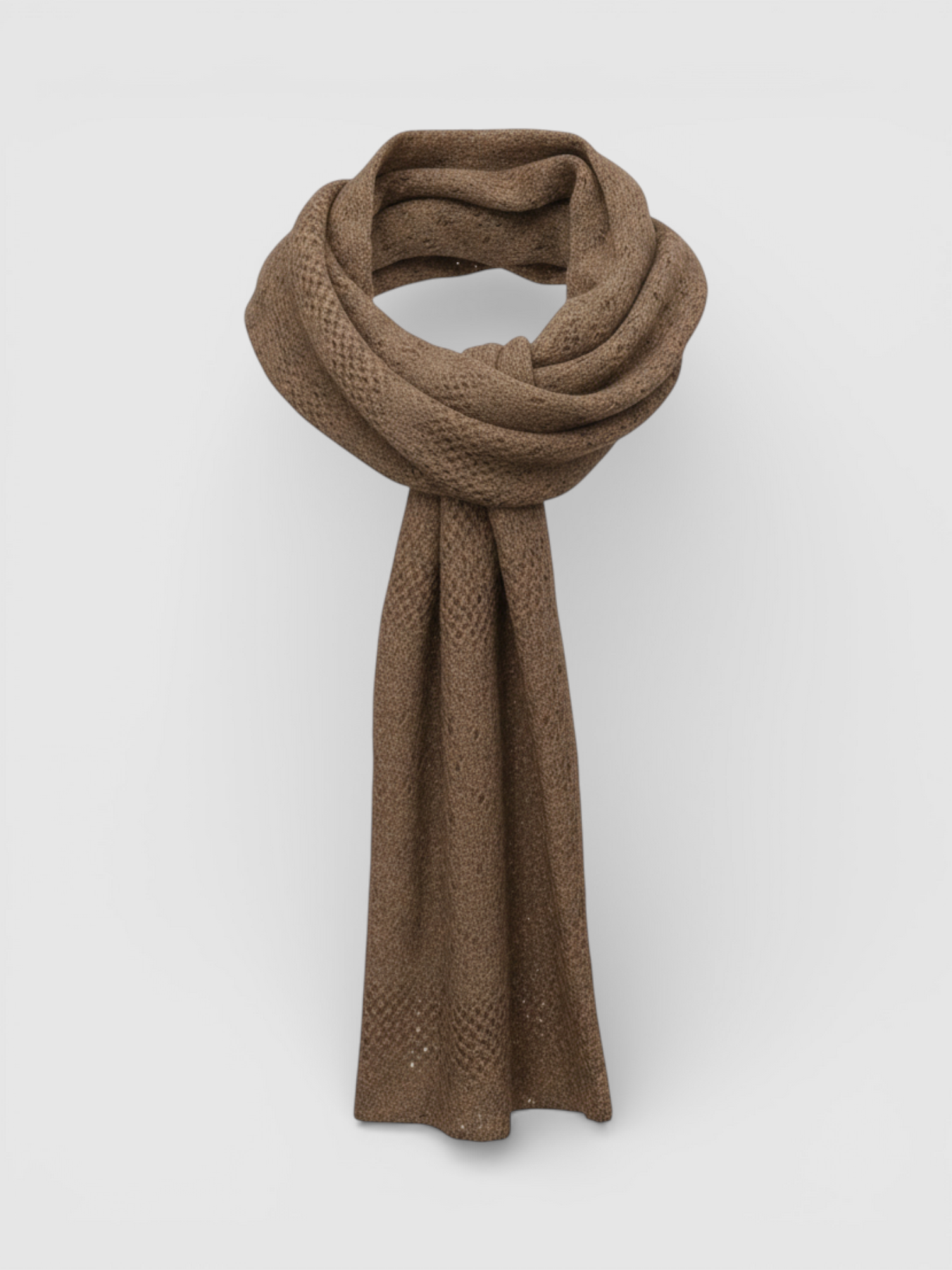 Écharpe marron ajouré en maille fine et légère