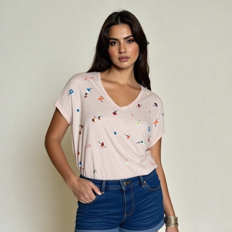 Le t-shirt décoré de broderies florales